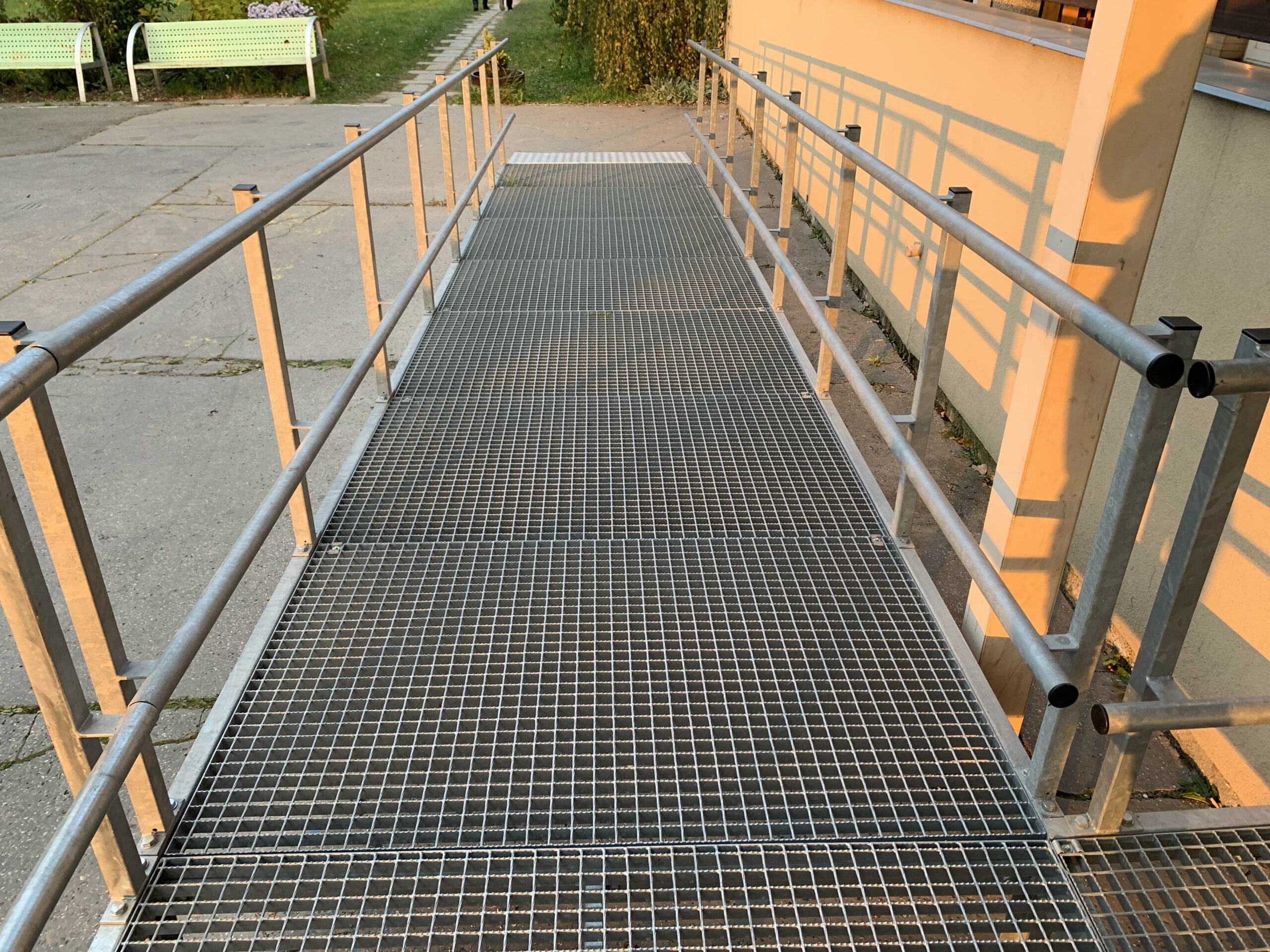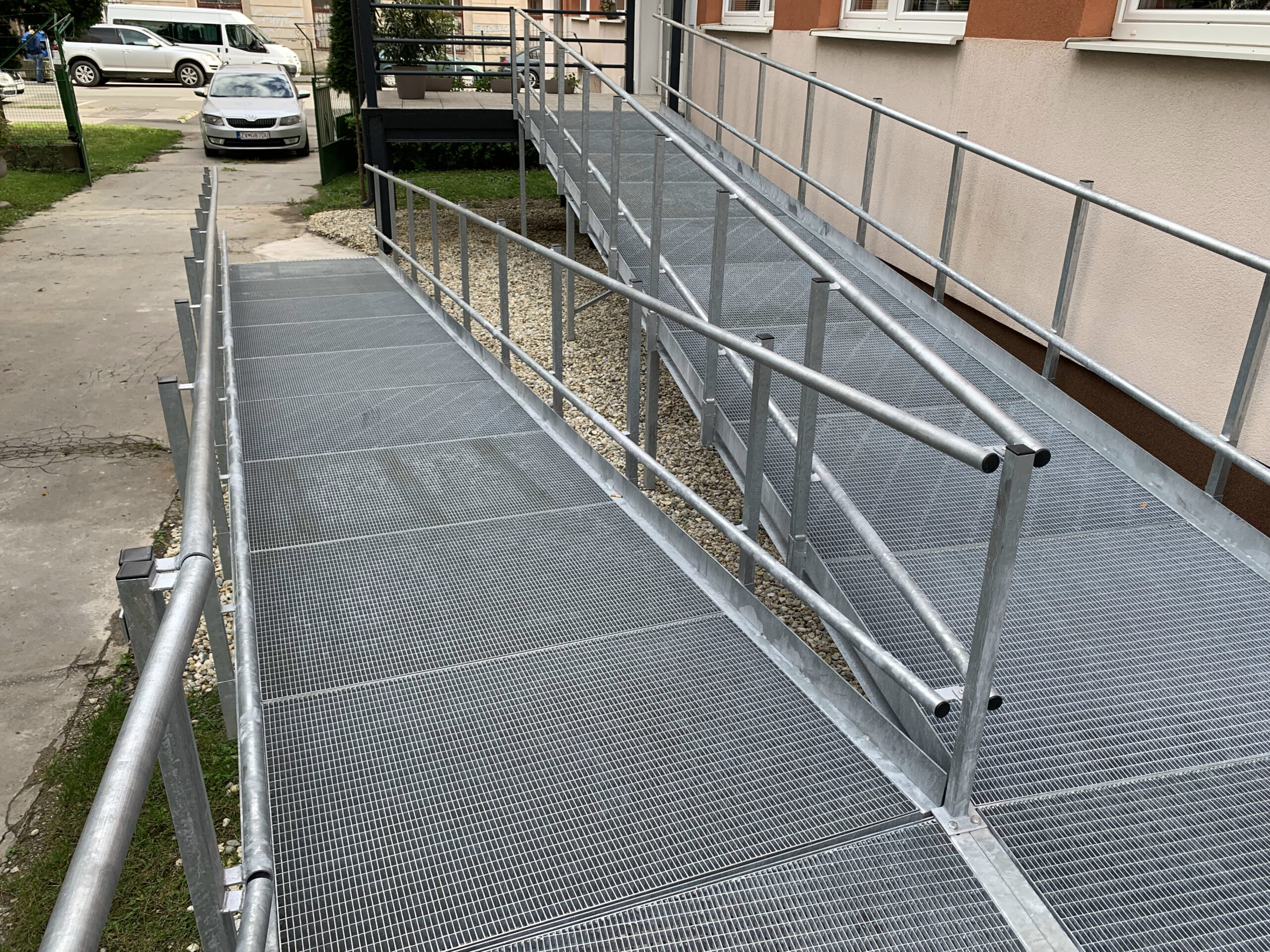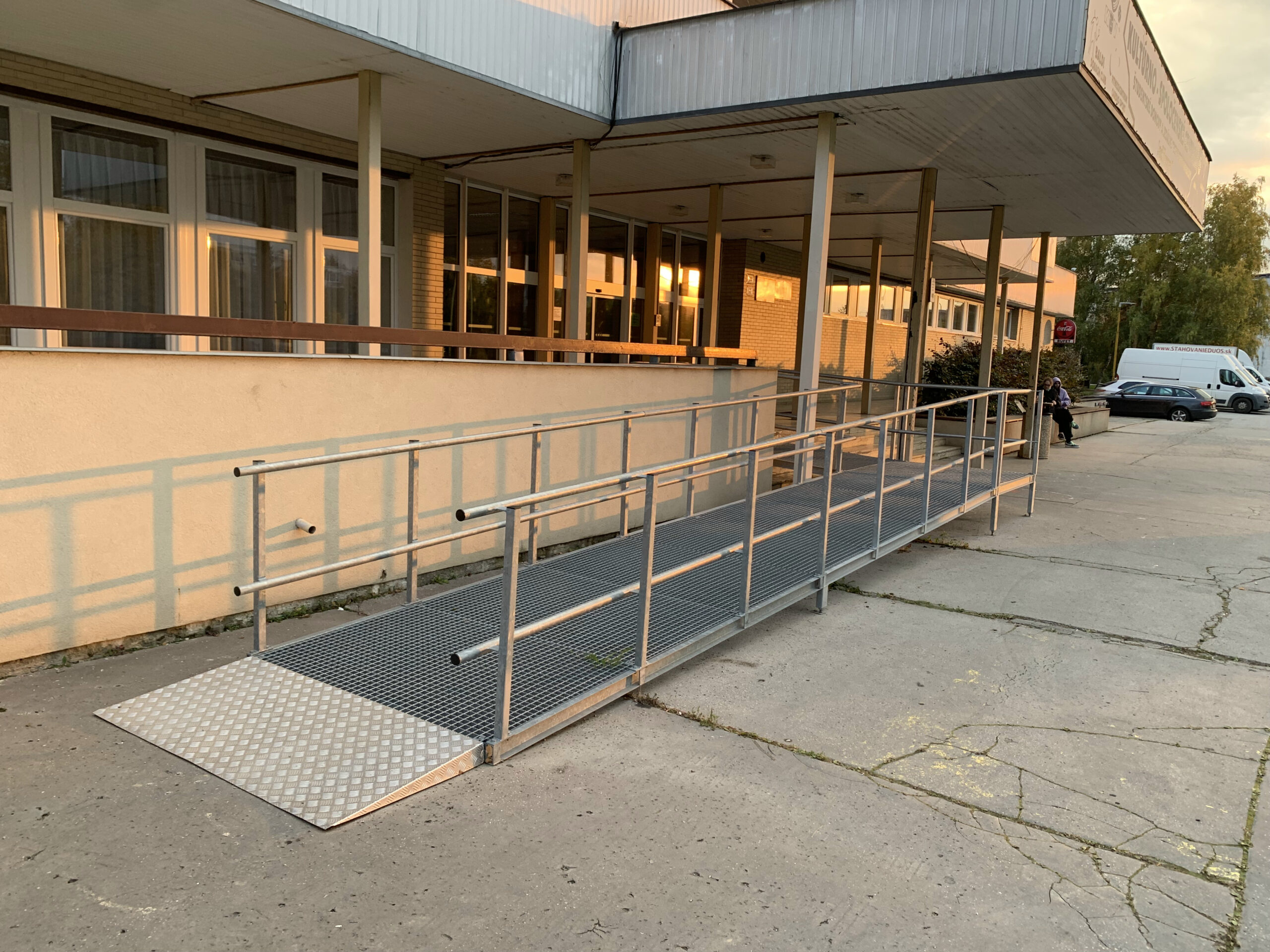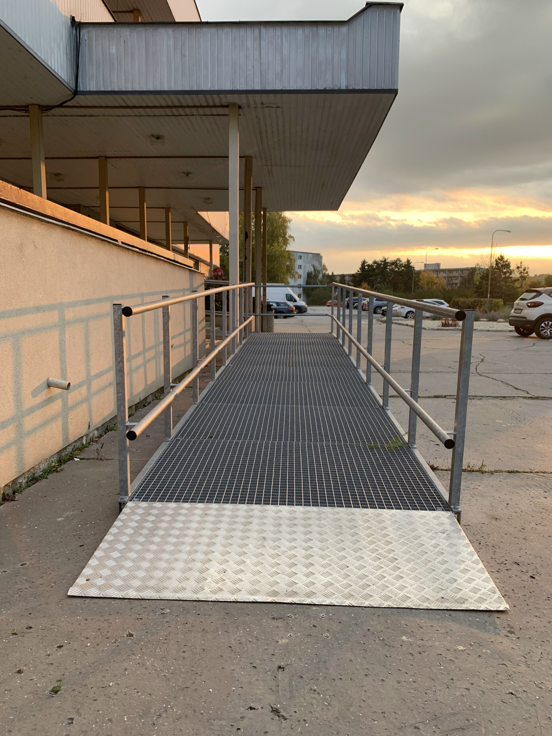 Prístupové rampy ponúkajú pohodlný prístup do budovy s miernym prevýšením. Skladačkový systém jednotlivých častí umožňuje flexibilné prispôsobenie dĺžky podľa vzniknutého sklonu. Okrem dôležitej protišmykovej úprave podlahy majú rampy tiež ochranné bočnice, ktoré zabraňujú vybočeniu invalidného vozíka či kočíka. Po celej dĺžke rampy je tiež inštalované zábradlie.
