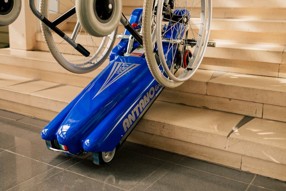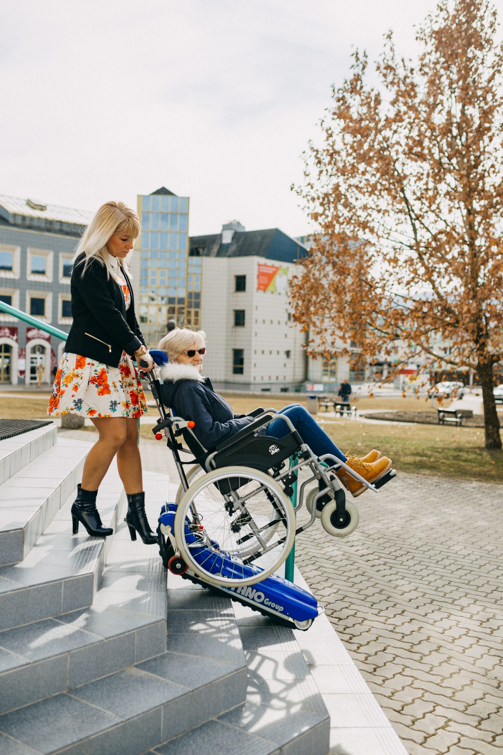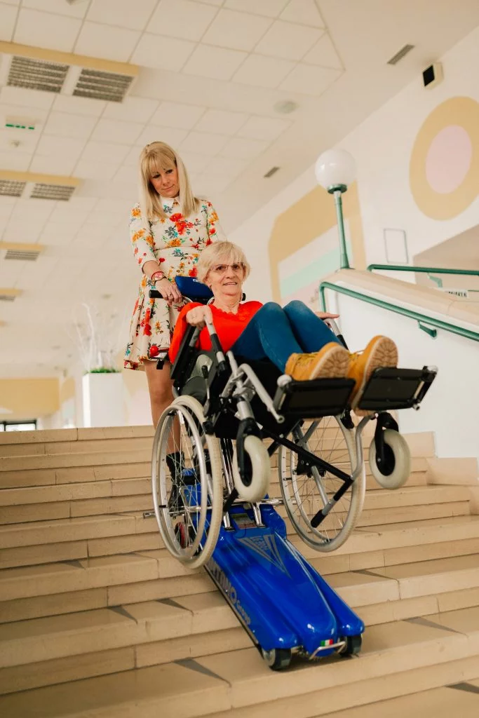 Pásový schodolez slúži na prepravu telesne postihnutých ľudí na invalidnom vozíku všade tam, kde je bezbariérový vstup nemožný. Toto prenosné praktické zariadenie nevyžaduje montáž ani stavebné úpravy, už za pár sekúnd je možné ho jednoducho rozložiť a prepravovať v kufri auta. Pásový schodolez sa jednoducho obsluhuje aj v malom priestore a je maximálne bezpečný pri presune. Je to ideálne mobilné riešenie pre presun na verejných miestach, v rodinných domoch, panelákoch alebo aj užších schodiskách.