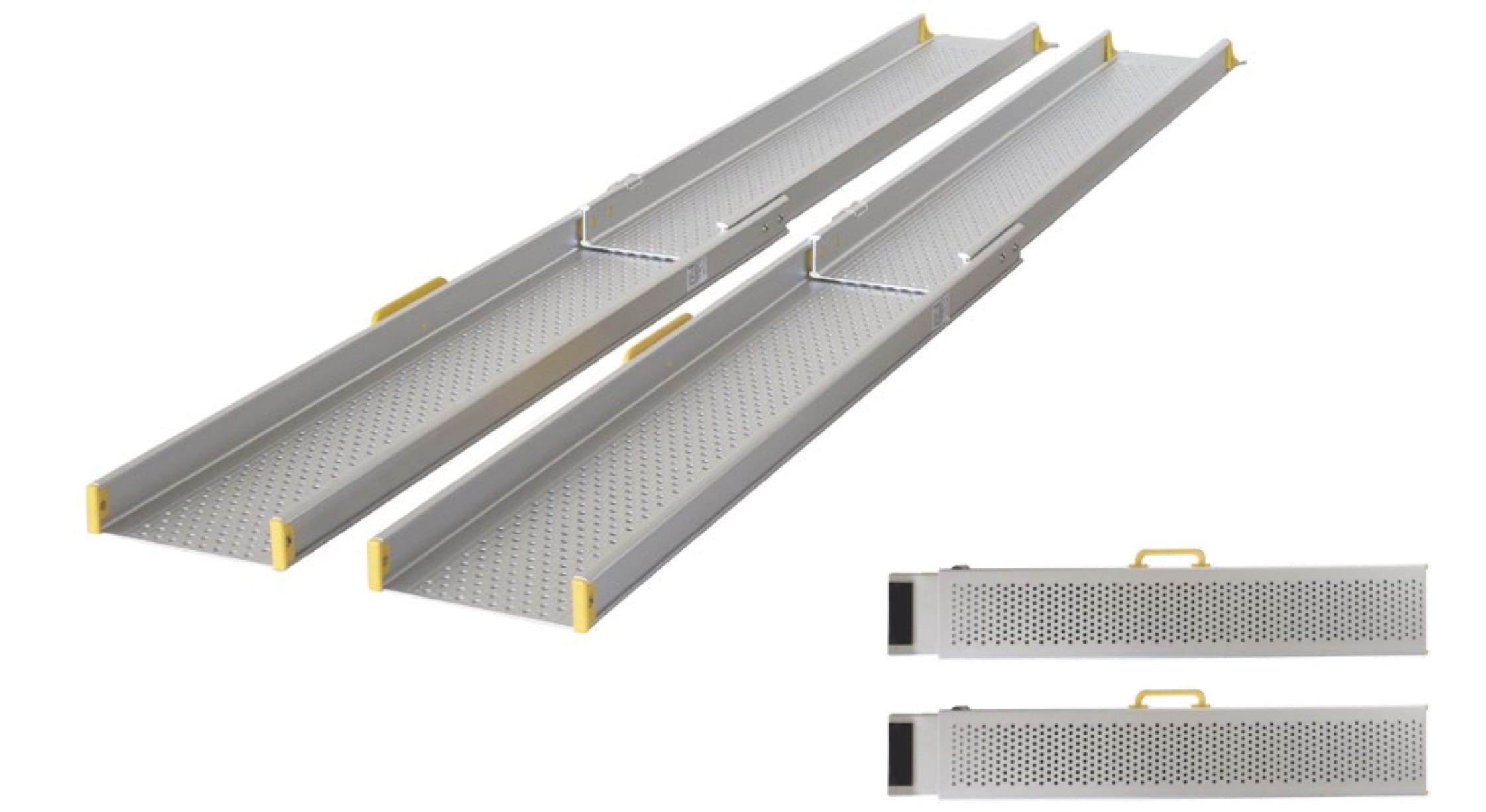 Prenosné nájazdové rampy sú praktickou pomôckou na prekonávanie menších prevýšení. Zároveň výrazne uľahčia nakladanie mechanického či elektrického vozíku do auta. Bezpečnostná západka zaisťuje ich stabilitu v rozloženom stave. Rampy majú ochranné bočnice proti vybočeniu vozíka a protišmykový priľnavý pás na konci, ktorý zabraňuje posunu rampy počas používania a tlmí vibrácie.